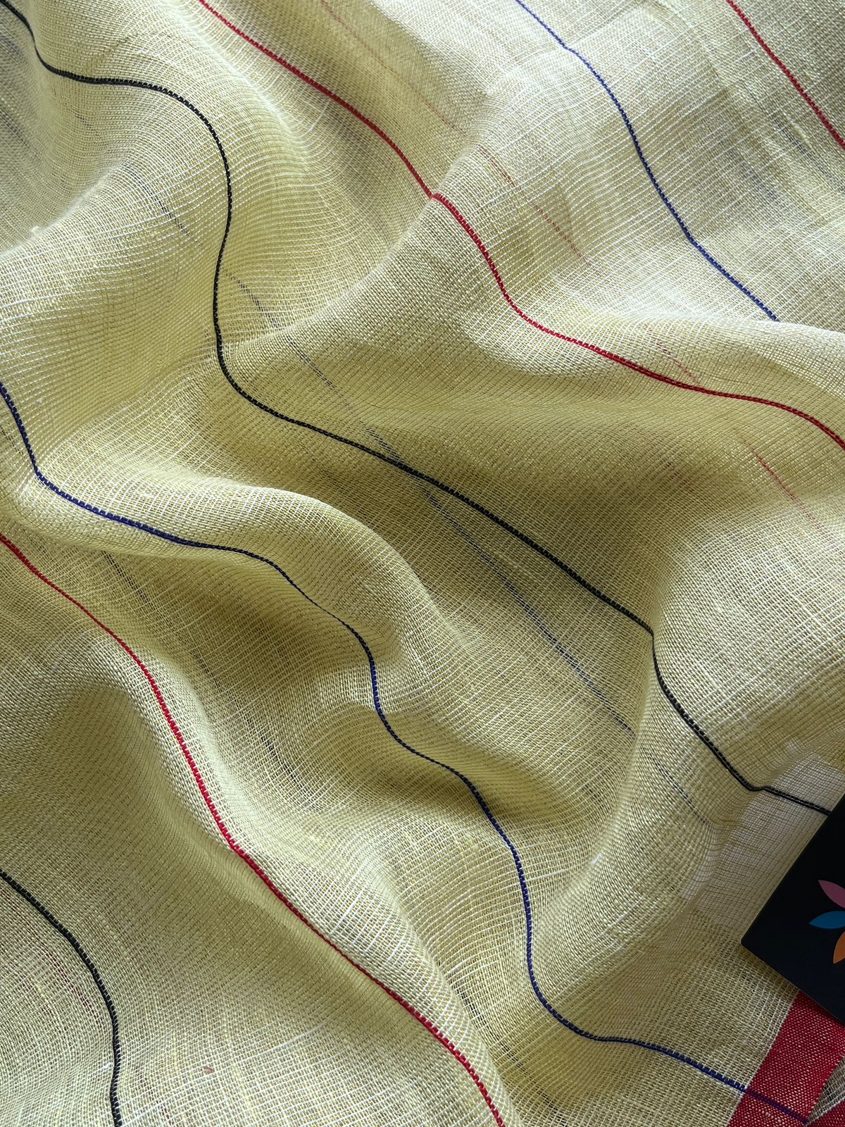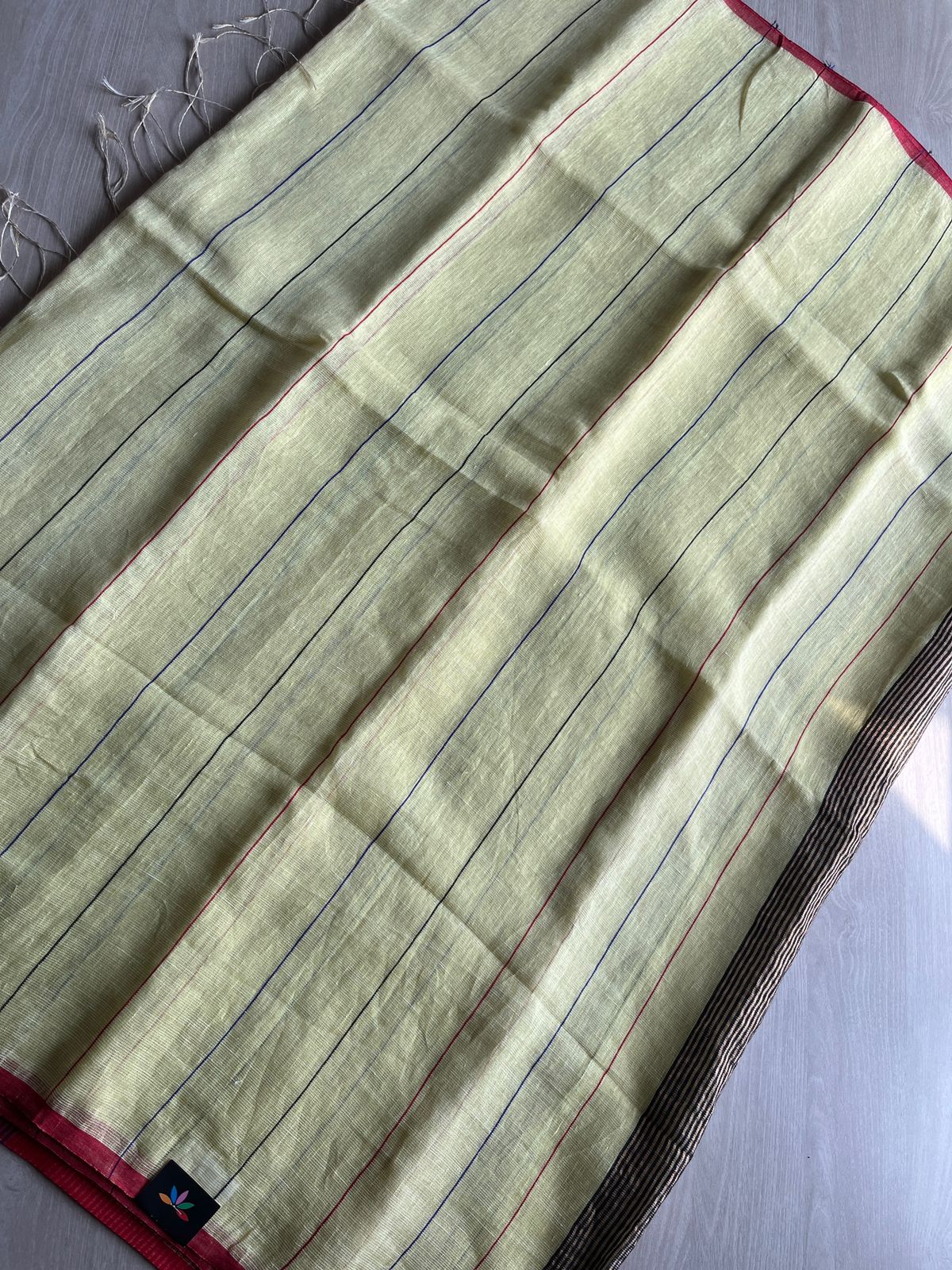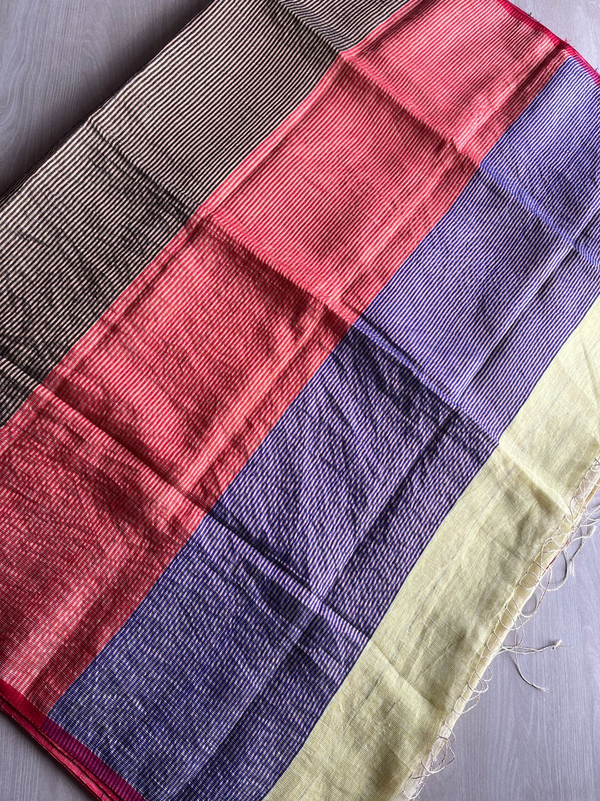 Tissue Linen Saree With Multicolor Pallu - 26712