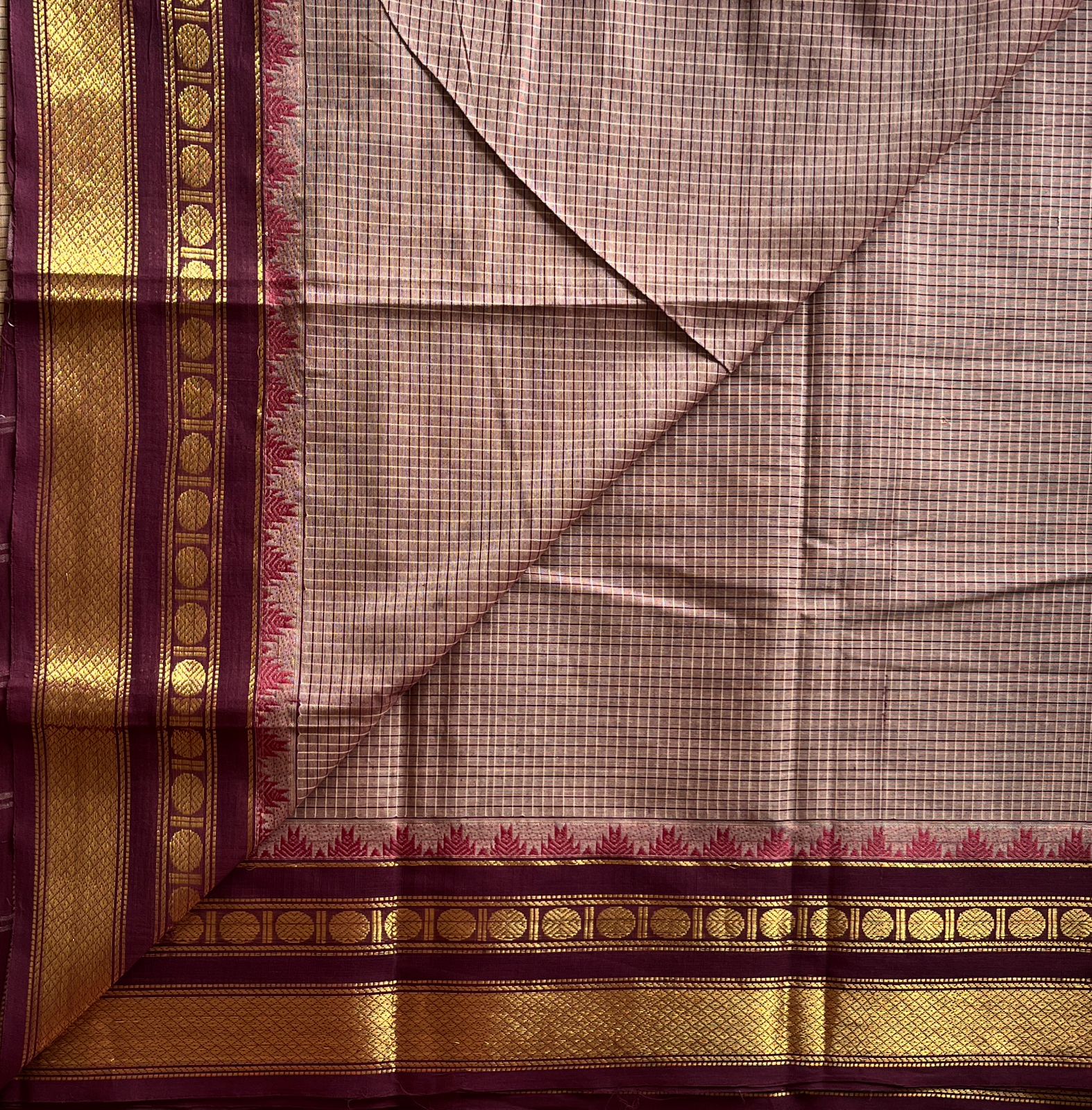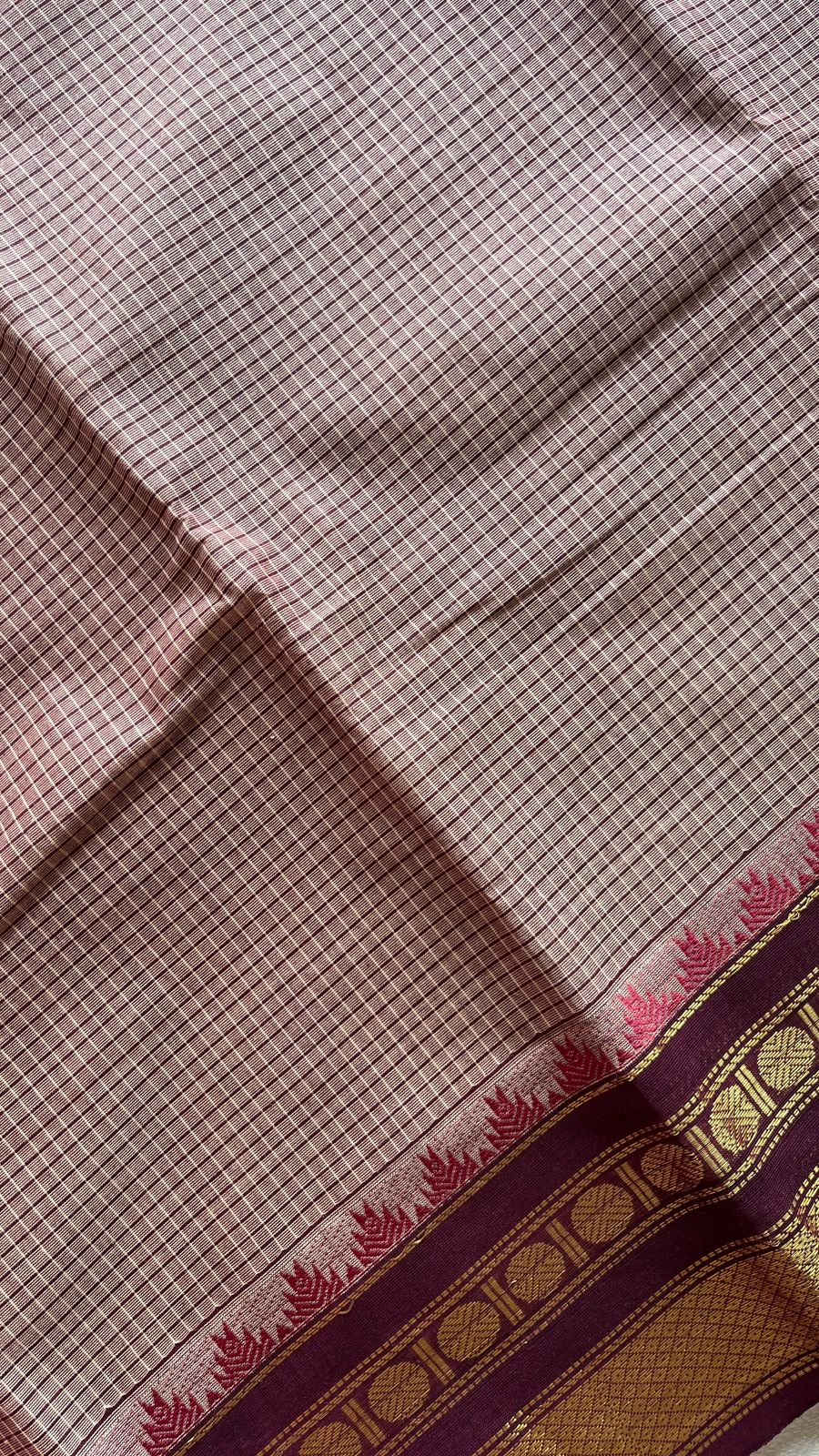 Traditional Small Checked Chettinad Cotton Saree - 25828