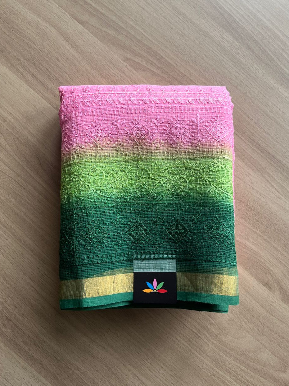 Tricolor All Over Machine Embroidered Kota Saree